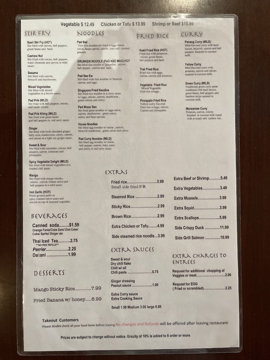 Thai Heaven's menu boasts an array of mouthwatering dishes, expertly crafted to please your senses. Start your meal with the crispy duck or the succulent shrimp, both offering a delightful taste of authentic Thai indulgence. For a robust experience, dive into the Panang Curry—a mild yet flavorful blend of basil, broccoli, and bell peppers sautéed in rich coconut milk, available for just $17.49. If you're feeling adventurous, don’t miss the Salmon Panang Curry, where perfectly grilled salmon is harmoniously paired with fresh vegetables and the exquisite panang sauce for $27.49.